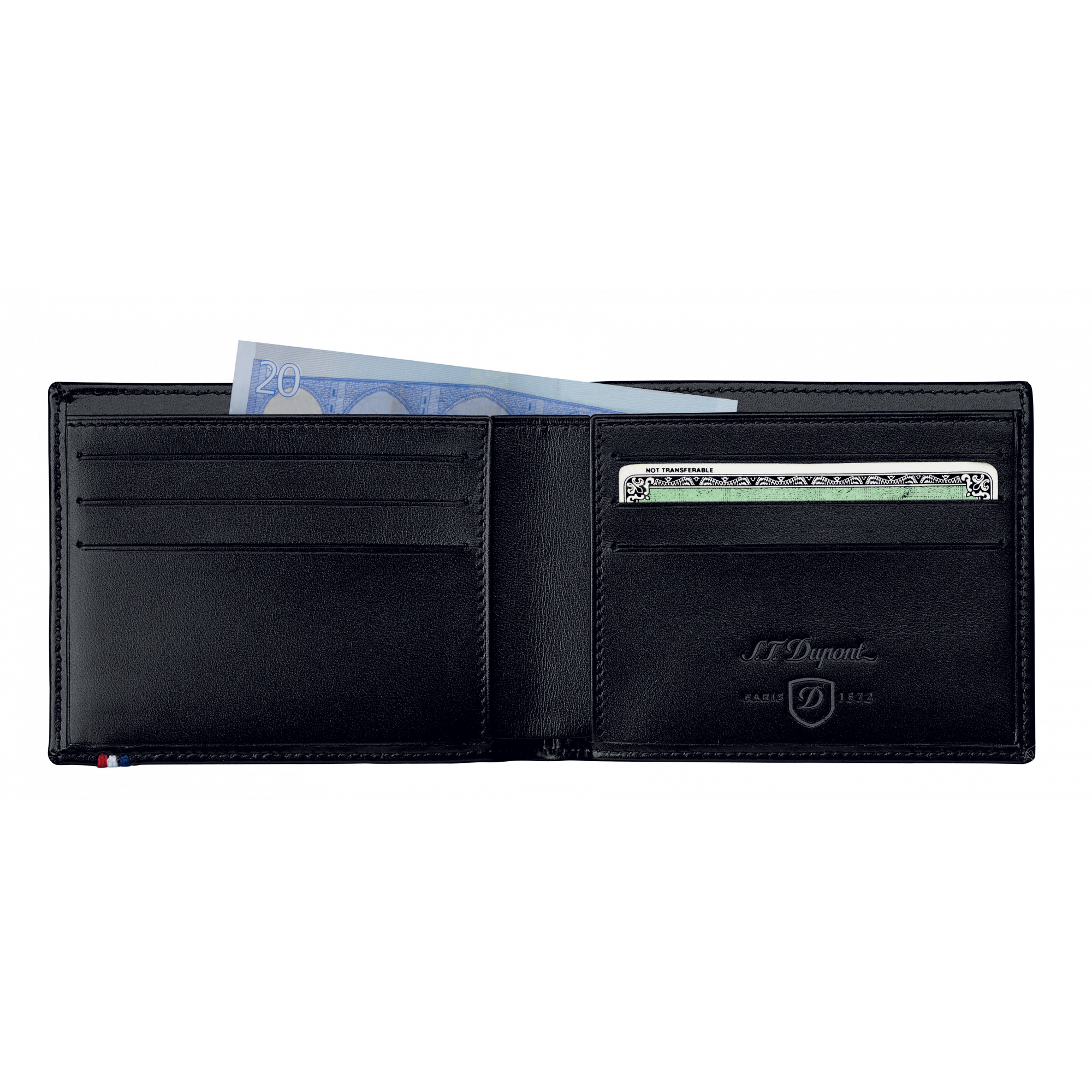 This classic black billfold wallet with its efficient storage is crafted from fine leather, creating an essential companion designed to endure years of use. It features 6 credit card slots, 2 slip pockets and banknote compartment.