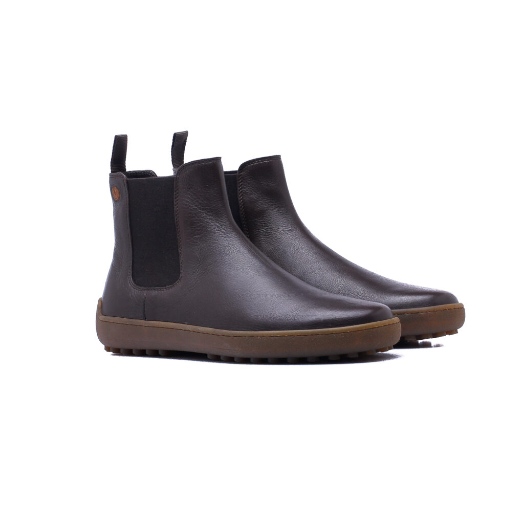 Chelsea boot with casual look in drummed calf leather. This particular finishing process gives the leather a slightly wrinkled look, while emphasizing its natural grain. The elasticated sides and the removable calf leather insole guarantee impeccable fit and maximum comfort. Non-slip studded box sole in ecological rubber, in amber colour. Handmade in Italy.