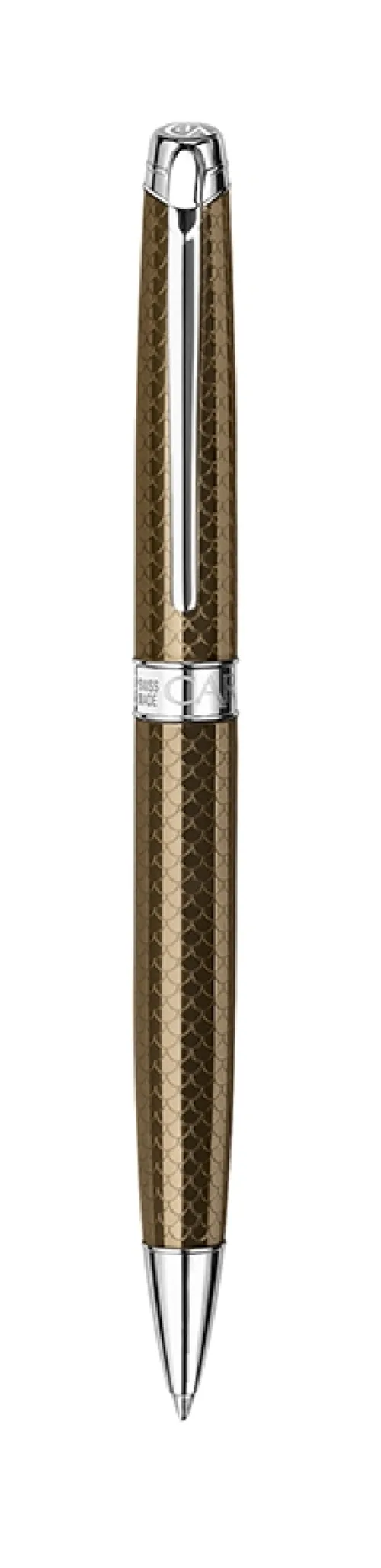 Excellence and refinement. The Léman Caviar is a subtle association of lacquer and guillochage techniques, revealing a fine undulating engraving enveloped with a glossy, amber tinted bronze lacquer. Refined sense of caviar beads… Silver-plated, rhodium-coated finish. The Léman Caviar ballpoint pen delivers up to 600 A4 pages, thanks to its acclaimed Goliath cartridge.