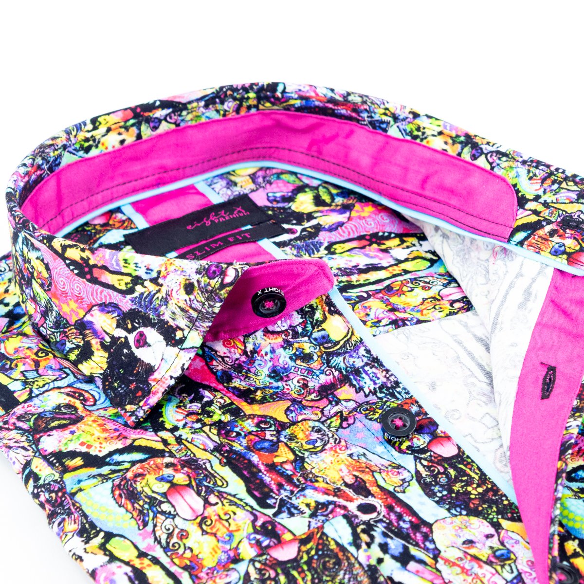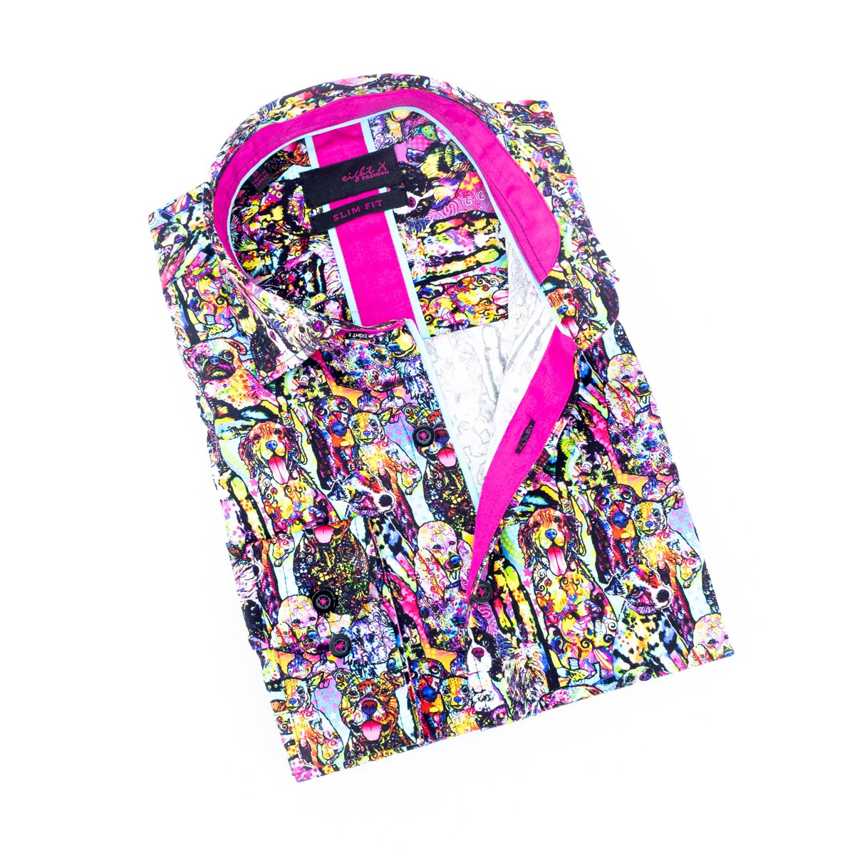 Show your love for man’s best friend with our “Dawg” button-down shirt. Handcrafted from Italian cotton, this vibrant shirt features an incredible psychedelic dog pattern (with many different breeds!), light blue and pink trim, and our universally flattering Signature Slim Fit cut.