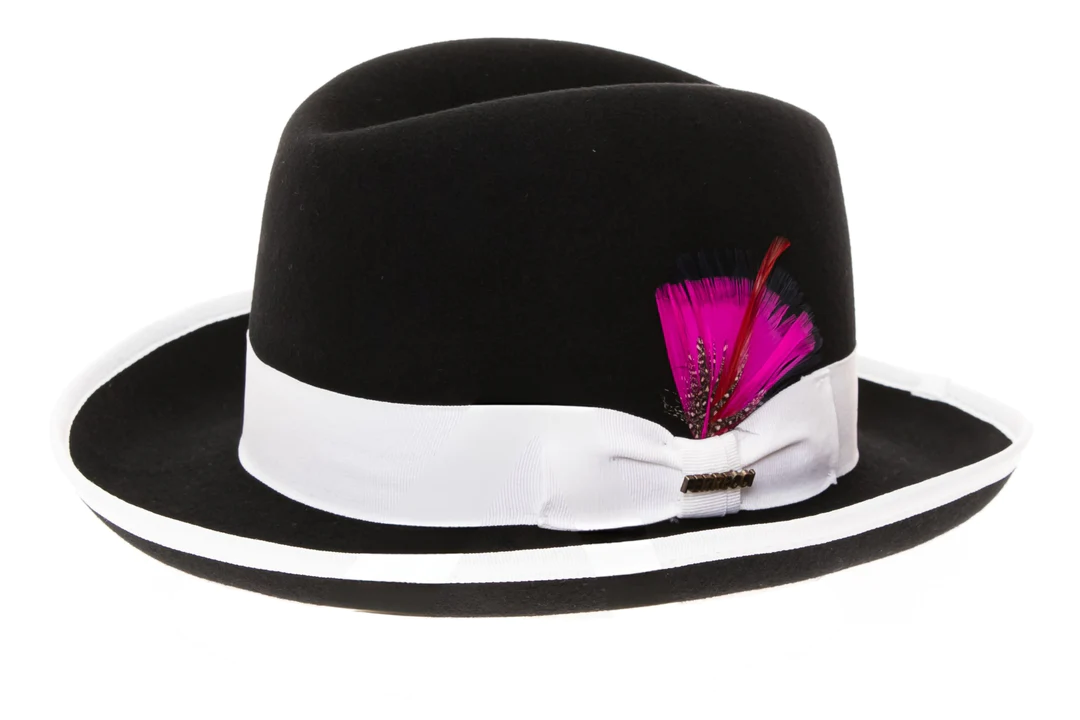 Ferrecci 100 % Wool Australian Fur Felt Black White Godfather Hat