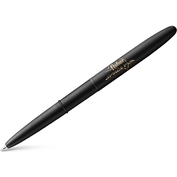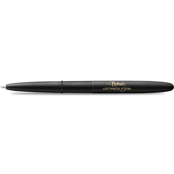The Fisher Space Pen Matte Black Bullet with Logo Ballpoint Pen. When closed, Bullet Space Pens are the perfect size to carry in your wallet, pocket, purse, car glove box, organizer or toolbox. When open it’s a full sized, evenly balanced writing instrument.The original Bullet Space Pen was conceived in July of 1948, Paul Fisher was soon machining a new pen design shaped from solid aluminum. It became our first Fisher ball point pen, the 400 Bullet Pen, and arguably the most popular pen of the twentieth century. This pen is now all brass with a Emerald Green Lacquered finish and a Gold Plated Clip.Cited as an outstanding example of industrial art, the classic design of the Fisher Bullet Pen has been exhibited for years in the New York Museum of Modern Art. The Bullet’s timeless styling has been the topic of many art books and magazine articles. Often imitated but never duplicated, the Fisher Bullet continues to be our most popular pen.