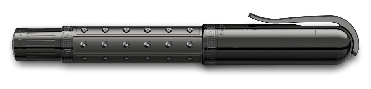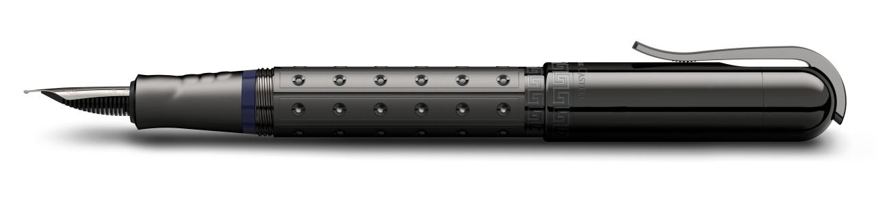 - Plunger-type fountain pen with handmade 18-carat gold nib (magnum- sized, ruthenium-coated)