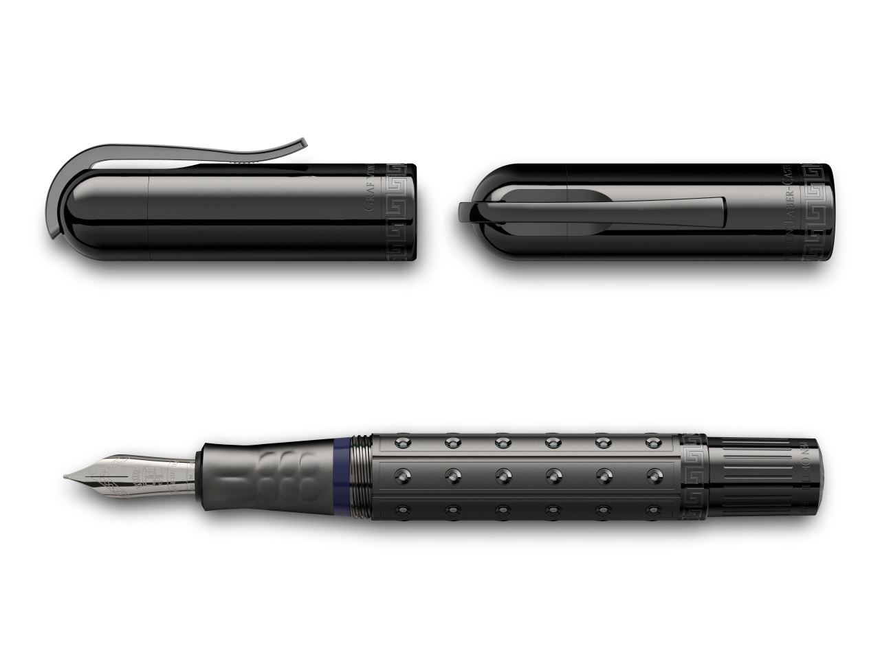 - Plunger-type fountain pen with handmade 18-carat gold nib (magnum- sized, ruthenium-coated)