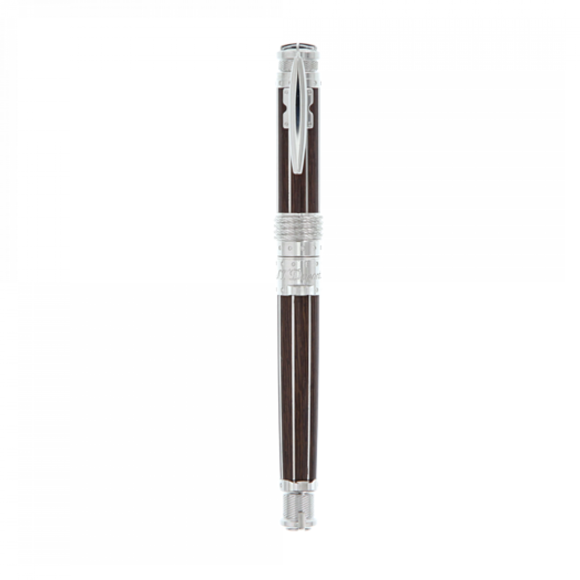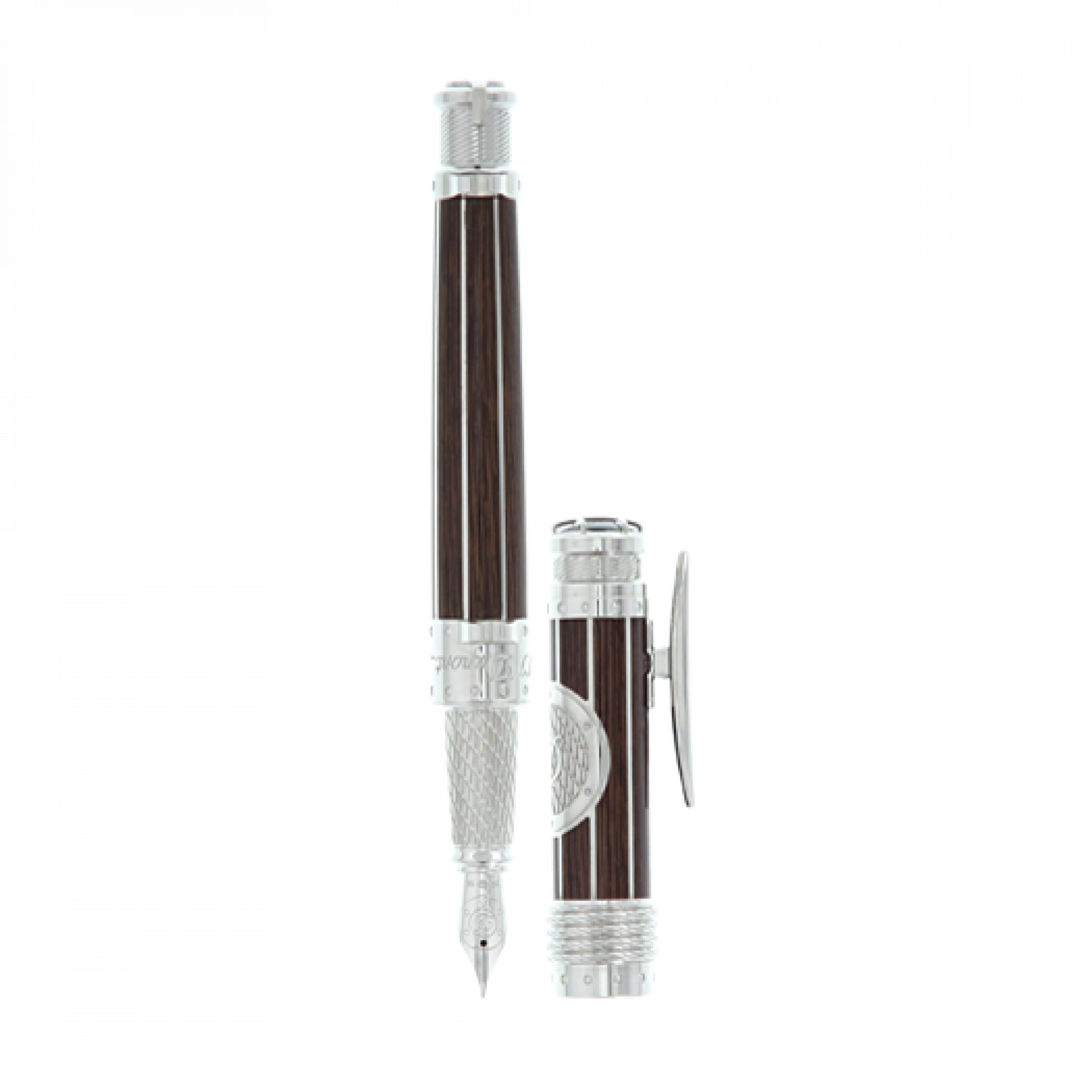 NeoClassique Fountain Pen with lacquer wood effect and palladium finishes. Cap with D logo in a palladium round decoration and a rope.