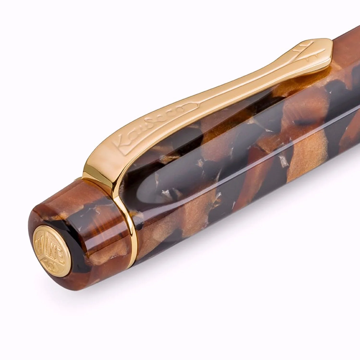 Hickory Brown features a combination of deep black and shimmering brown shades to give this pen a vintage appeal. Finished with an integrated gold pocket clip.