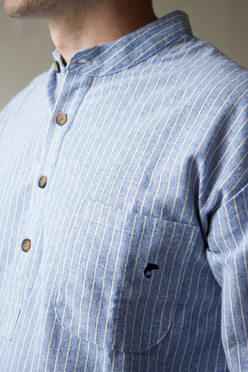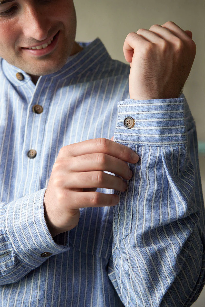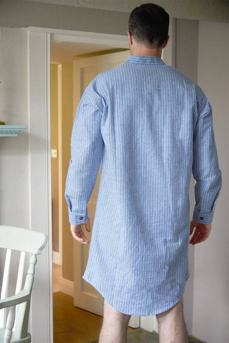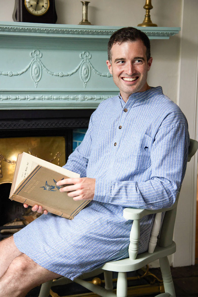Lee Valley Cotton Men’s Nightshirt – Blarney Stone Navy/Blue/White Stripe