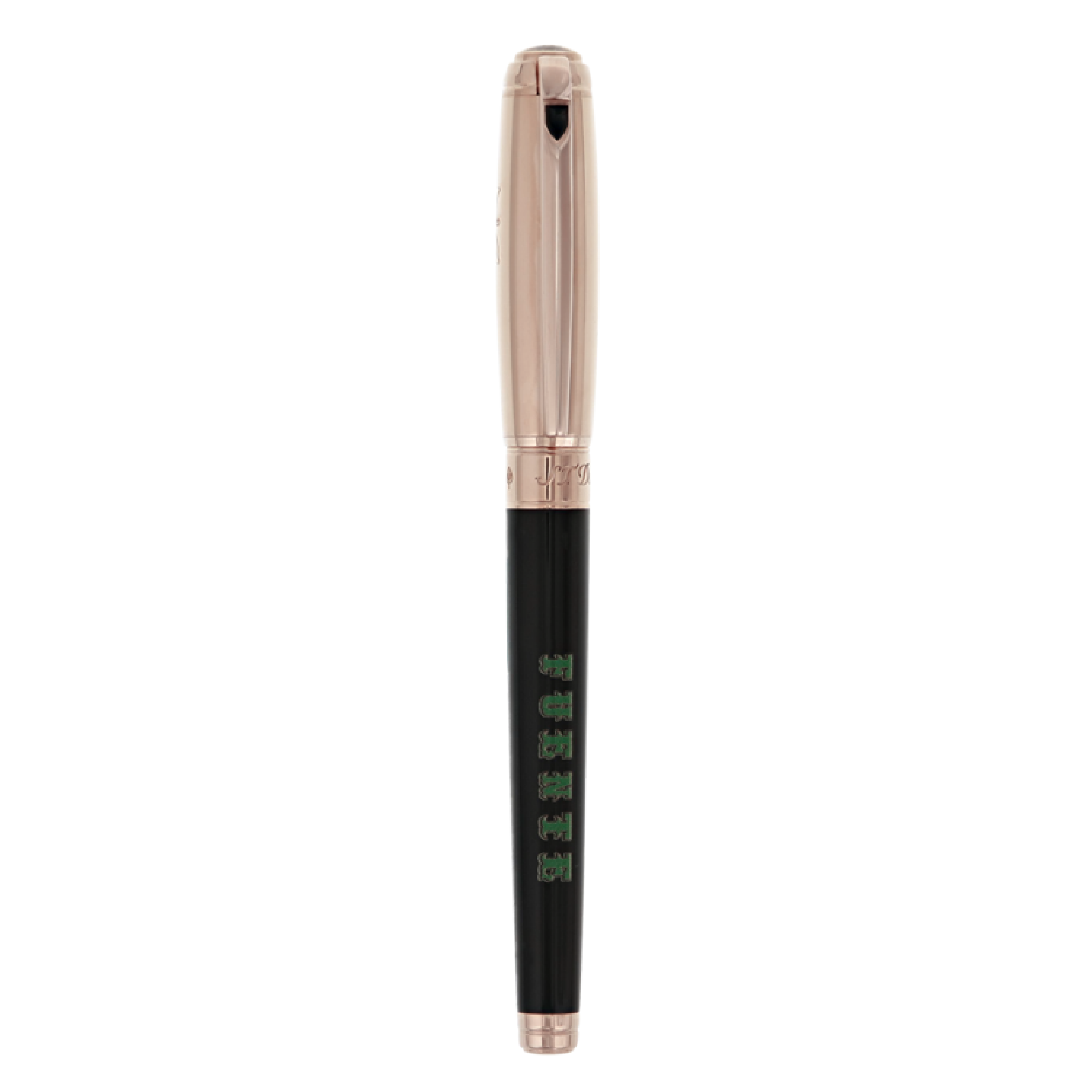Medium size roller ball pen made with black and green lacquer and pink gold finishes