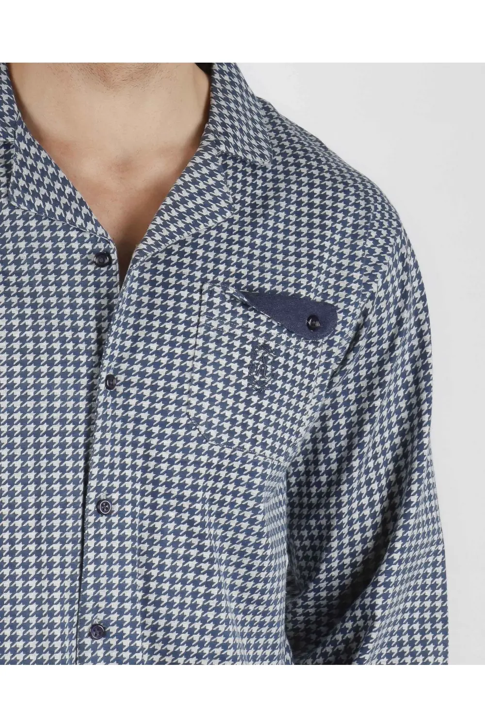 Admas Classic Open Pajamas Long Sleeve Houndstooth for Men BLUE