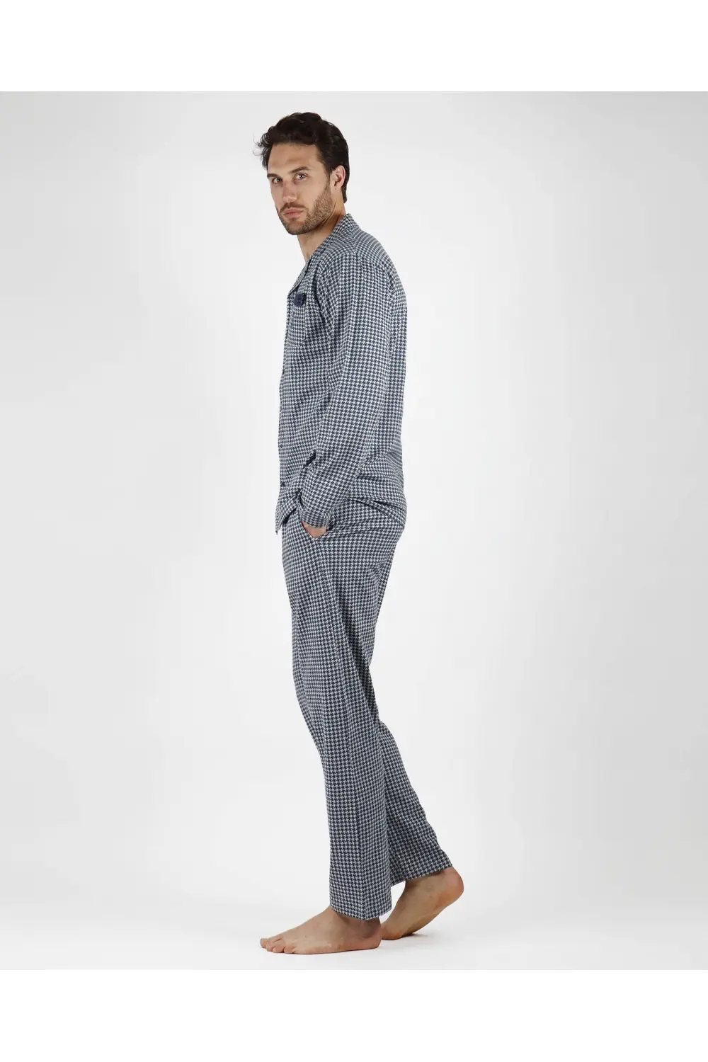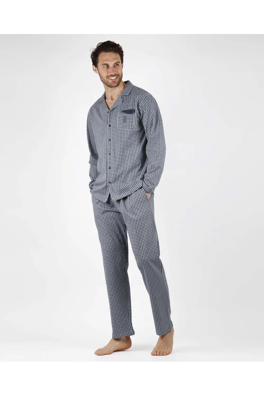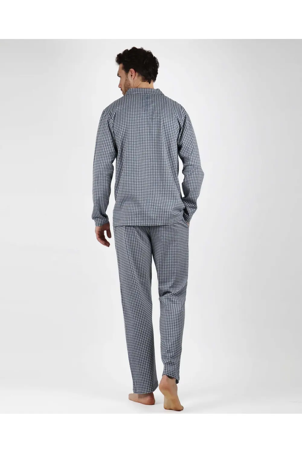 - ADMAS CLASSIC Open Pajamas Long Sleeve Houndstooth for Men* Open cotton knit pajamas with long sleeves and long pants.