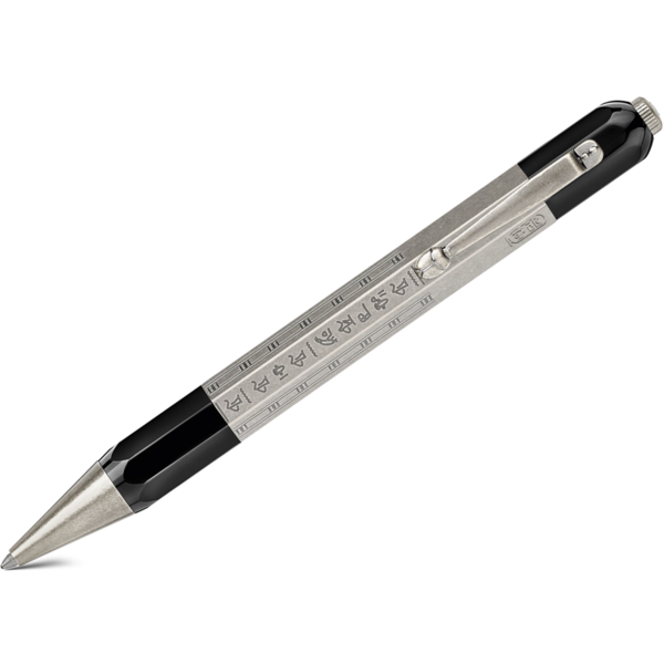 The Montblanc reinterpretes the writing instrument featuring a longer, slimmer silhouette and craftsmanship refined over generations. With its octagonal shape, this writing instrument is reminiscent of the octagonal-shaped writing instruments designed by Montblanc in the 1920’s, which included Egyptian-style engravings: so-called “Egyptian pens”. Created in black precious resin and metal, it features “Montblanc” on the barrel in Egyptian hieroglyphics, and a scarab beetle on the clip.