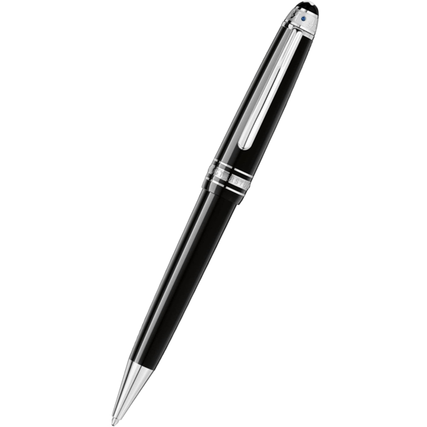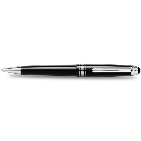 Montblanc Meisterstuck Ballpoint Pen – UNICEF Black – Platinum Trim – Midsize. The gorgeous pen is deep black resin made with elegant platinum-coated details, decorated with the White Montblanc emblem. The pen size is between LeGrand and Classique ballpoint pens. State your elegant taste of writing instruments with this smooth writing ballpoint pen.