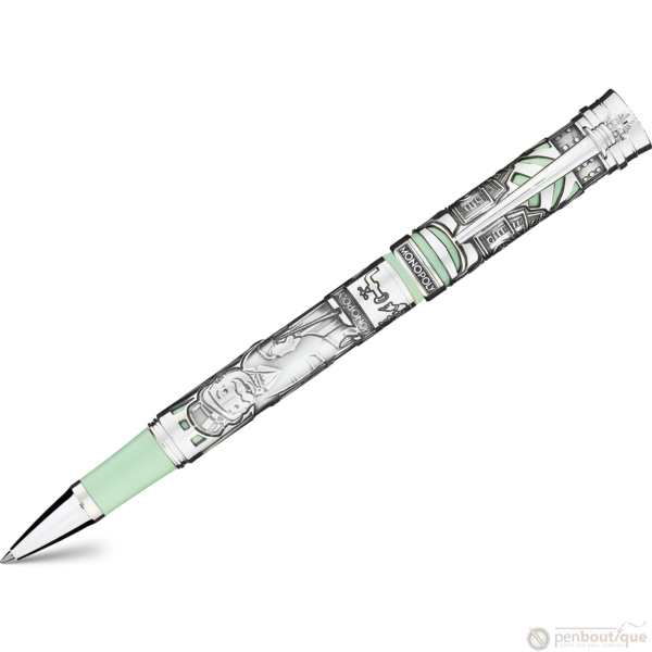 | Complimentary | MONOPOLY L.E. arrives in a private-edition gameboard made by Montegrappa, along with eight sterling silver play tokens. Concealed travel compartments house pen and play pieces. |