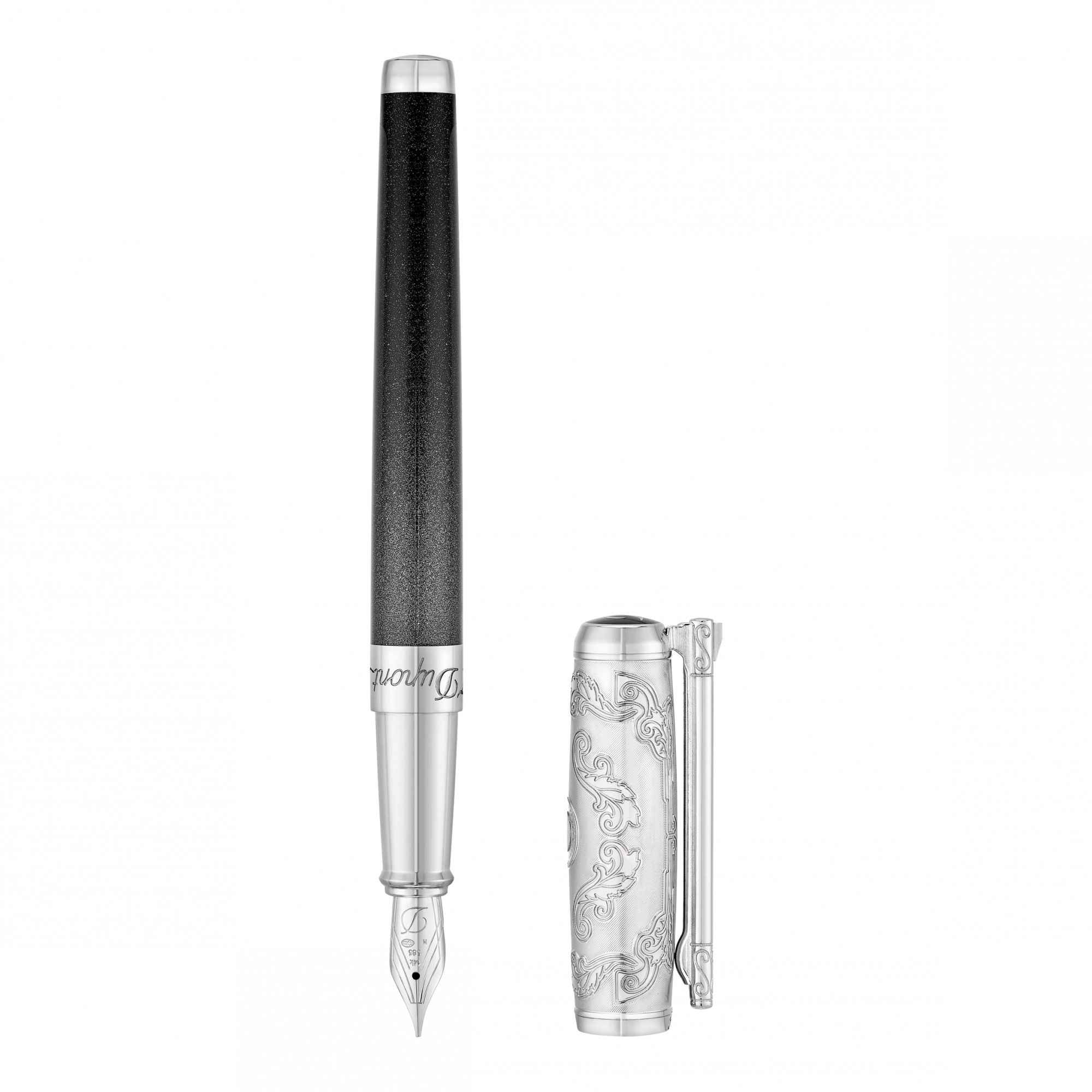 As precious as the words it will write, the iconic S.T. Dupont fountain pen design is finished with intricate vintage-pistol style engraving and palladium. At its heart, layers of hand-applied natural lacquer are given added depth with a sparkle of meteorite dust.