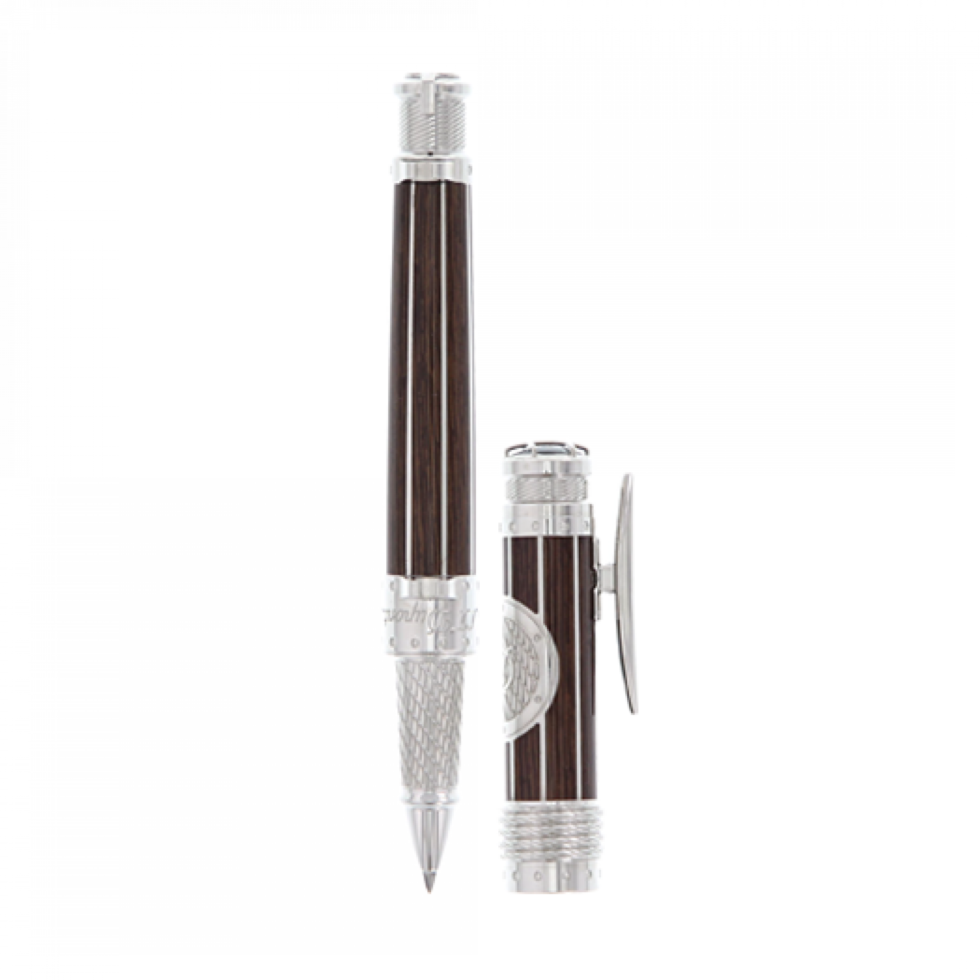 NeoClassique Roller Ball with lacquer wood effect and palladium finishes. Cap with D logo in a palladium round decoration and a rope.