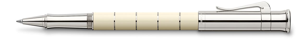 - Barrel made of ivory-coloured precious resin segments, into which fine platinum-plated rings are incorporated