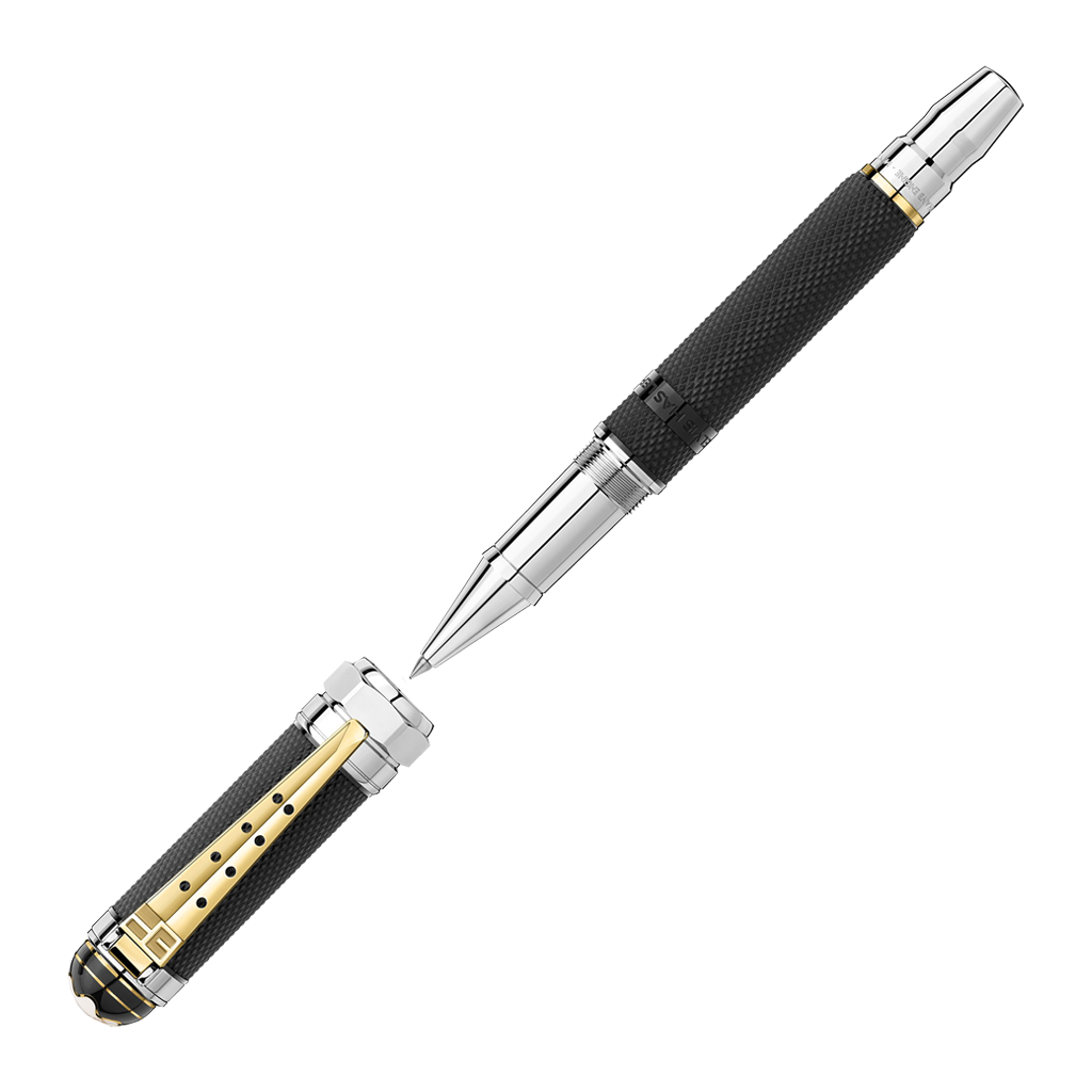 Elvis Presley is still regarded as one of the most significant cultural icons of the 20th century – the “King of Rock’n Roll” who shaped a generation. Born in 1935, Tupelo, Mississippi, and relocated to Memphis, Tennessee, Elvis Presley became one of the most famous musicians. The overall shape of the writing instrument is in the form of a car engine’s spark plug, inspired by Elvis’ love for V8 engines, as well as the shape of the clip. Pattern on cap and barrel from the finishing of the Golden ring he wore during the “Aloha from Hawaii” concert. Clip has a V shape coming from Elvis’ love of Cadillacs and their V8 Engine, and the “EP” from his signature style sunglasses