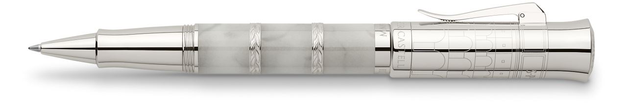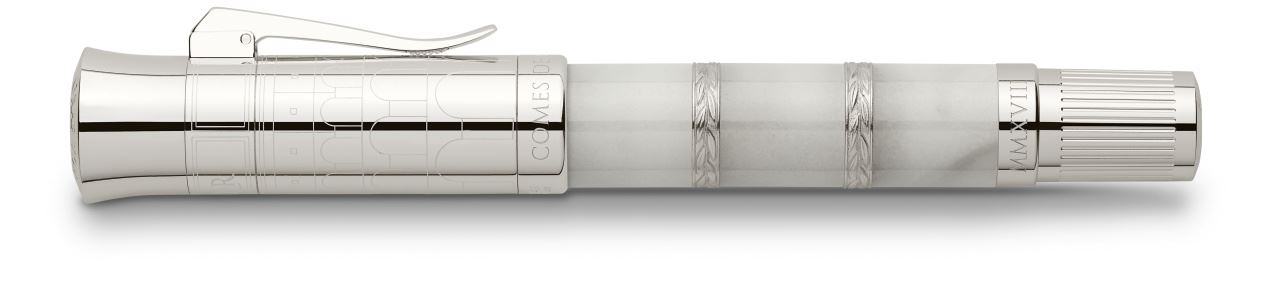 - Platinum-plated barrel adorned by three segments of staturario marble from Carrara