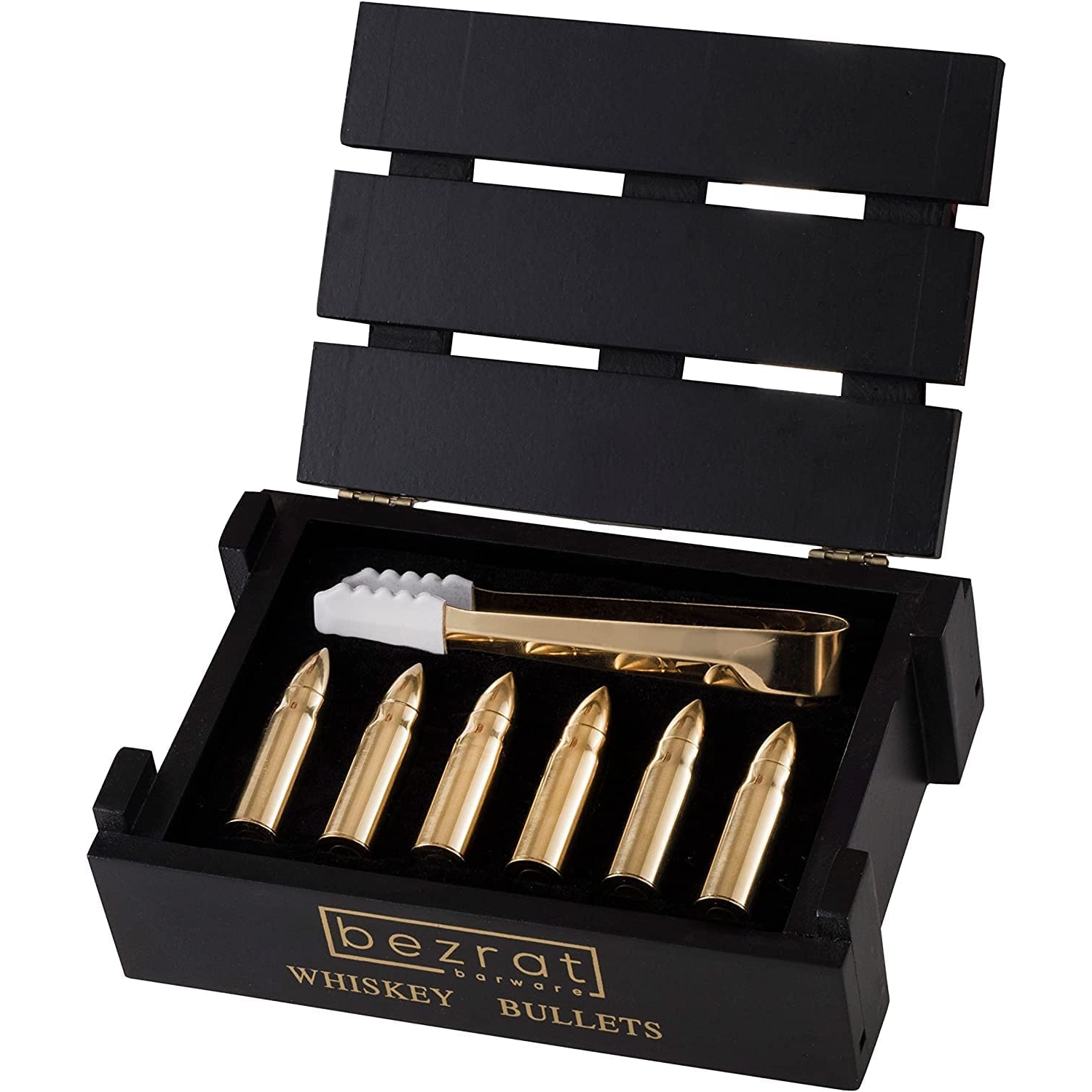 Set of 6 Gold Chilling Stones, and Ice Tong in Gift Box