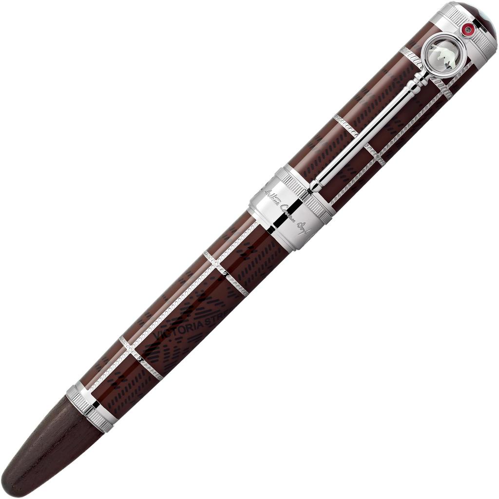 The Montblanc Writers Edition Sir Arthur Conan Doyle Limited Edition, is dedicated to one of the most renowned crime novelists and originator of the famous consulting detective Sherlock Holmes. Made from brown precious lacquer, the color is a reference to the smoking pipe often used by Holmes – an element that is also reflected in the wooden cap and cone. The cap and barrel of this edition are decorated with a plaid pattern in reference to Holmes’ coat, as well as parts of a historic London city map. The clip is inspired by the magnifying glass used by Sherlock Holmes. Behind the clip is the silhouette of a hound made from photoluminescent pigments in reference to the Holmes story “The Hound of the Baskervilles”. The cap ring features the signature of Sir Arthur Conan Doyle as well as the logo of “A Study in Scarlet” – Holmes´ first case. The Montblanc Emblem in precious Mother-of-Pearl crowns the cap of the edition. The handcrafted Au 750 solid gold nib is engraved with a portrait of Sir Arthur Conan Doyle and magnifying glass in reference to Sherlock Holmes.